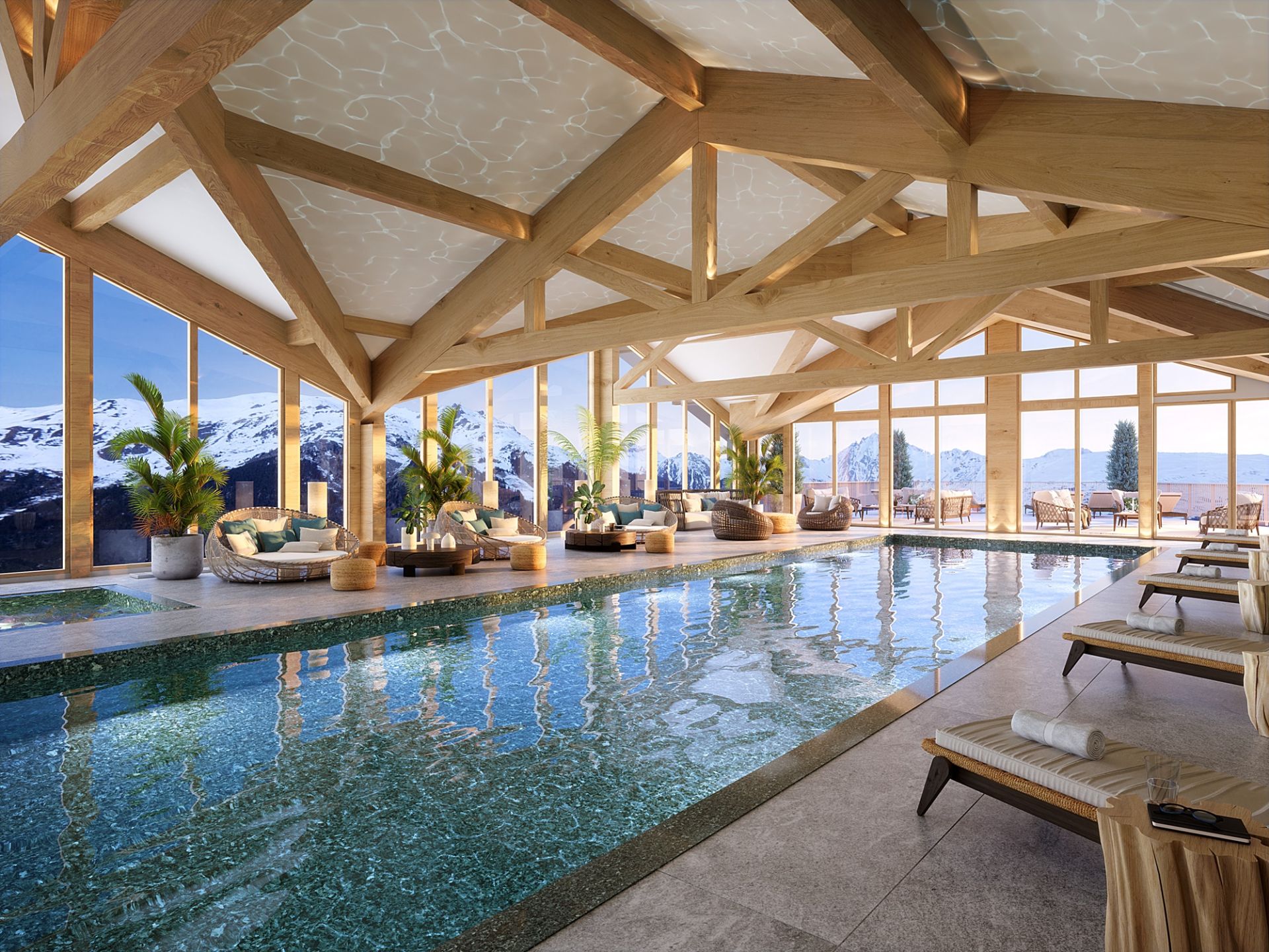 Le Coeur des Cimes, résidence de tourisme située à La Plagne de 84 logements, du 2 au 5 pièces dont certains en duplex. Résidence haute de gamme située aux pieds des pistes de la station La Plagne - Montalbert. Espace extérieur pour la plupart des logements, casiers à ski chauffés, caves, emplacement de stationnement en sous-sol pour la plupart, espace bien-être au sein de la résidence (piscine intérieure chauffée, jacuzzi, hammam...), logements meublés et équipés. Care Promotion Arc Alpin