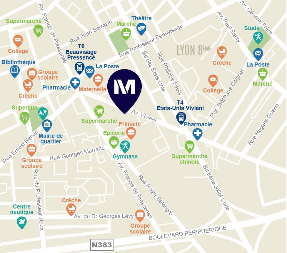 Découvrez des appartements du 2 au 4 pièces pensés pour votre confort aux portes du 7e et 8e arrondissements de Lyon: chaque logement dispose d’un balcon, d’une terrasse ou d’un jardin privatif. Un cœur d’îlot paysager apporte fraîcheur et sérénité, tandis que le stationnement en sous-sol assure confort et sécurité au quotidien. Ces appartements s’inscrivent dans une résidence à l’architecture contemporaine, conçue pour offrir une qualité de vie durable à ses habitants. Située dans le quartier Viviani – Bonnevay à Vénissieux, aux portes sud de Lyon, la résidence bénéficie d’un environnement agréable et verdoyant. Vous profitez d’une proximité immédiate avec les commerces, les écoles ainsi que les équipements culturels et sportifs. Les lignes de tramway T4 et T6 au pied de la résidence et l’accès rapide aux grands axes (A7, A43, périphérique lyonnais) facilitent vos déplacements quotidiens vers Lyon et ses environs.