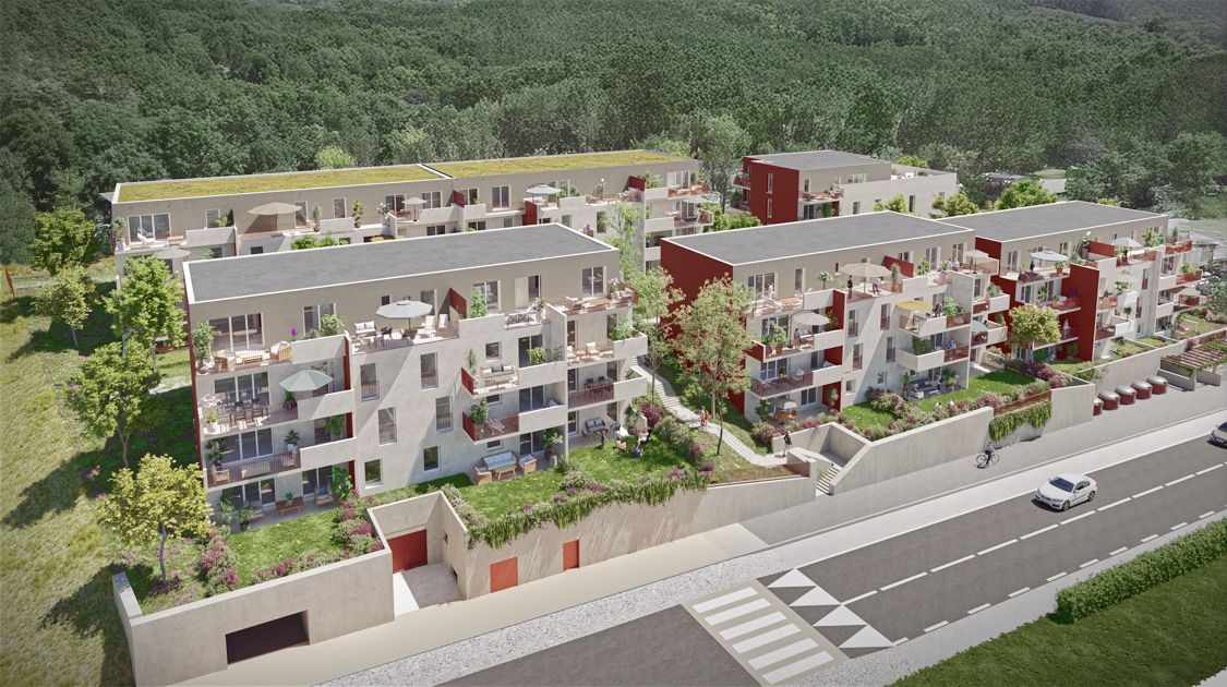 Sur un site exceptionnel en surplomb de la vallée offrant de larges vues sur le paysage de montagne, ce programme neuf innovant privilégie les espaces verts partagés et la convivialité.