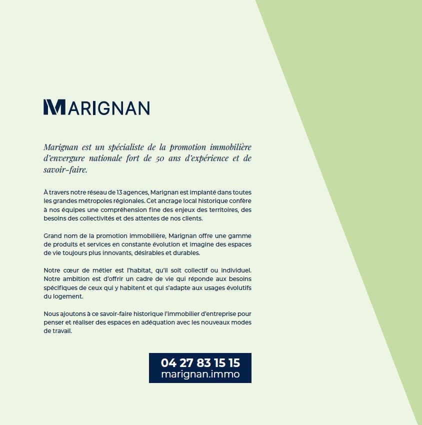 • De beaux appartements déclinés du 2 au 4 pièces, s’ouvrant tous sur un espace extérieur telle qu’une loggia, une terrasse ou un jardin privatif