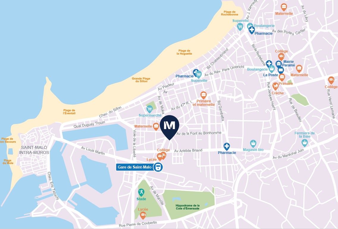 À seulement 2 minutes à pied du marché Rocabey, 6 minutes à pied de la gare et 10 minutes de la grande plage du sillon, la résidence profite d’un emplacement central privilégié. Écoles, commerces et services du quotidien se trouvent également à quelques pas.
