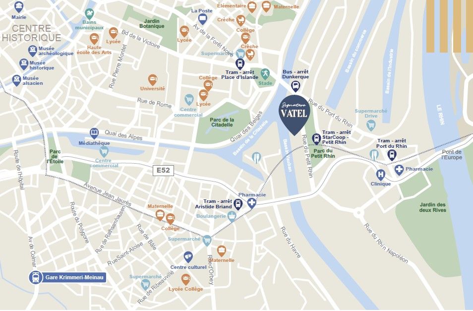 • Bassin Vauban et Parc du Petit Rhin au pied de la résidence, Parc de la Citadelle à 1,7 km, UGC Ciné Cité Strasbourg Etoile en 7 min à vélo et le Musé d’Art Moderne et Contemporain de Strasbourg à 5,1 km