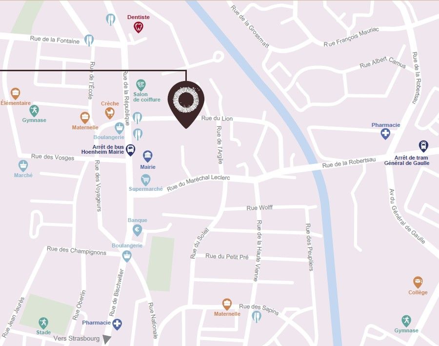 Au nord de Strasbourg dans la commune d’Hœnheim, découvrez notre nouvelle réalisation située en plein centre-ville et à proximité du canal de la Marne au Rhin.