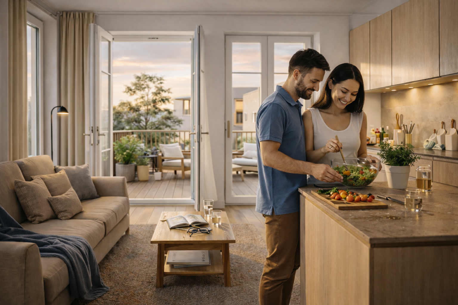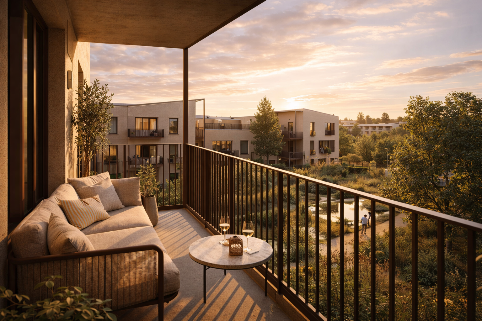 Appartements lumineux et maisons avec jardins privatifs dans un environnement verdoyant avec parc central.