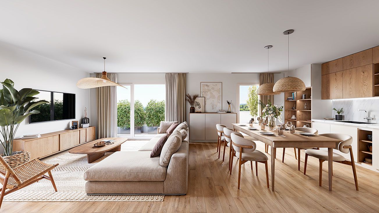 Vertu’Ose se distingue par ses 22 appartements en accession à la propriété, situés sur les niveaux supérieurs du bâtiment principal, avec un rooftop paysager offrant une vue dégagée. Ces logements, du 2 au 4 pièces, bénéficient d’une conception pensée pour le confort : extérieurs privatifs, orientation optimisée pour maximiser la lumière naturelle, et pour les plus grands, double orientation favorisant la ventilation naturelle et les échappées visuelles.