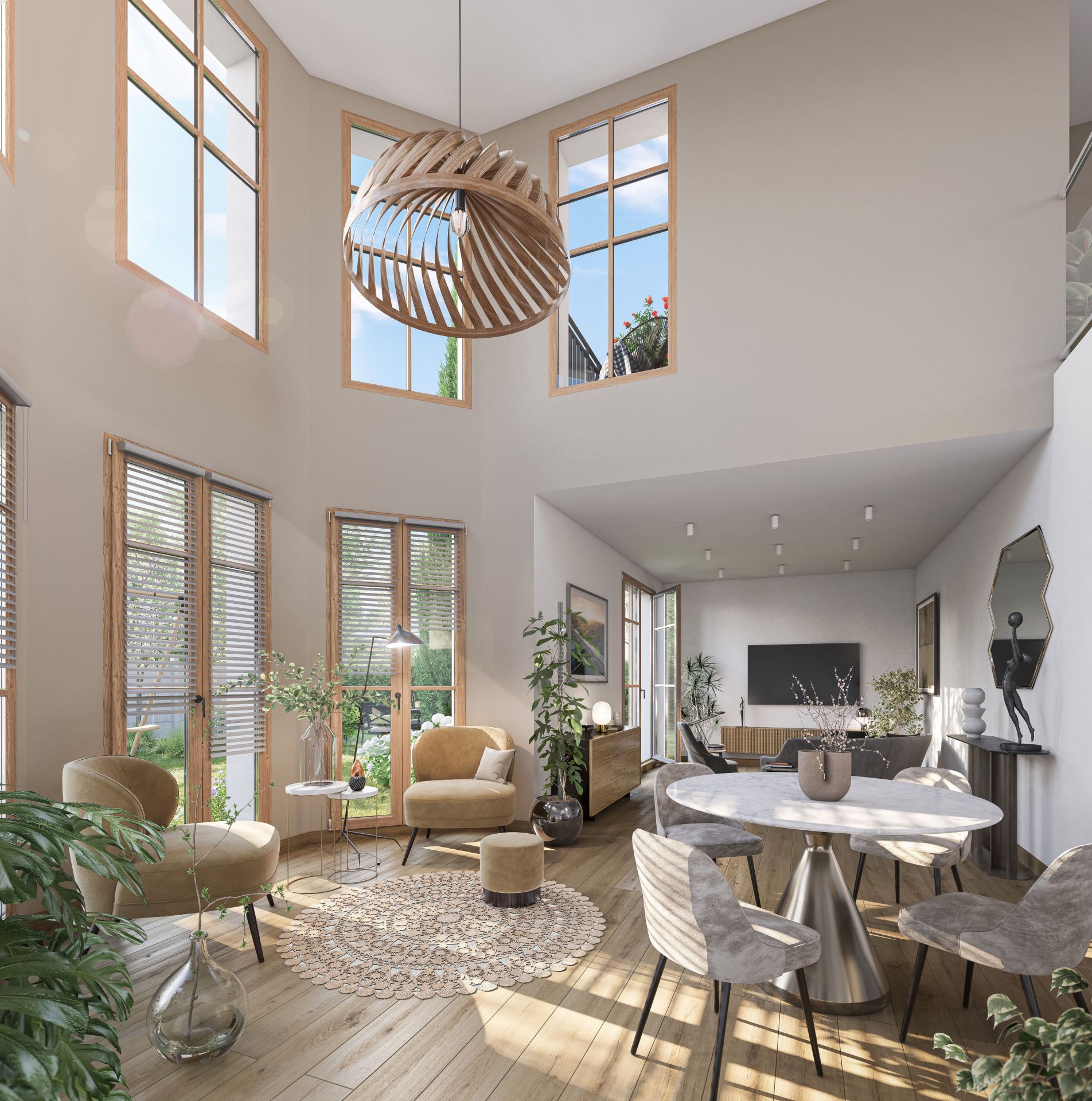 Revêtements de sol : Parquet chêne et/ou carrelage de grès cérame Menuiseries en bois aluminium Double vitrage isolant Volets roulants motorisés Ouvertures des portails à distance sécurisées Système Vigik et digicode Visiophone à écran couleur dans la maison Réglementation Environnementale (RE 2020) Plafond chauffant et rafraîchissant Thermostat régulateur dans chaque pièce de vie Chauffage individuel par pompe à chaleur air/eau Commande à distance des volets, éclairages et températures Portails avec contrôle d’accès Garage individuel Portail métallique commande à distance Place de stationnement en extérieur