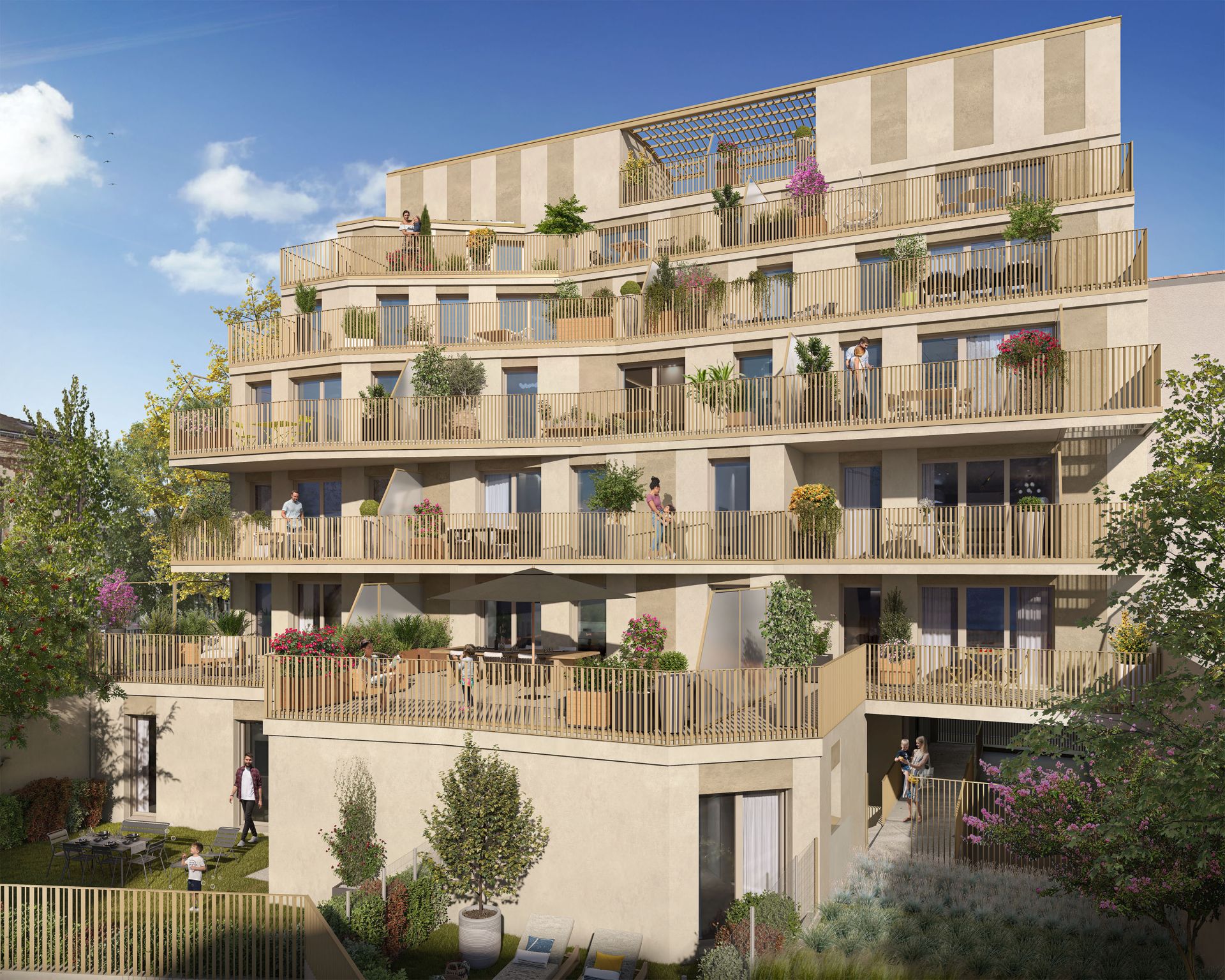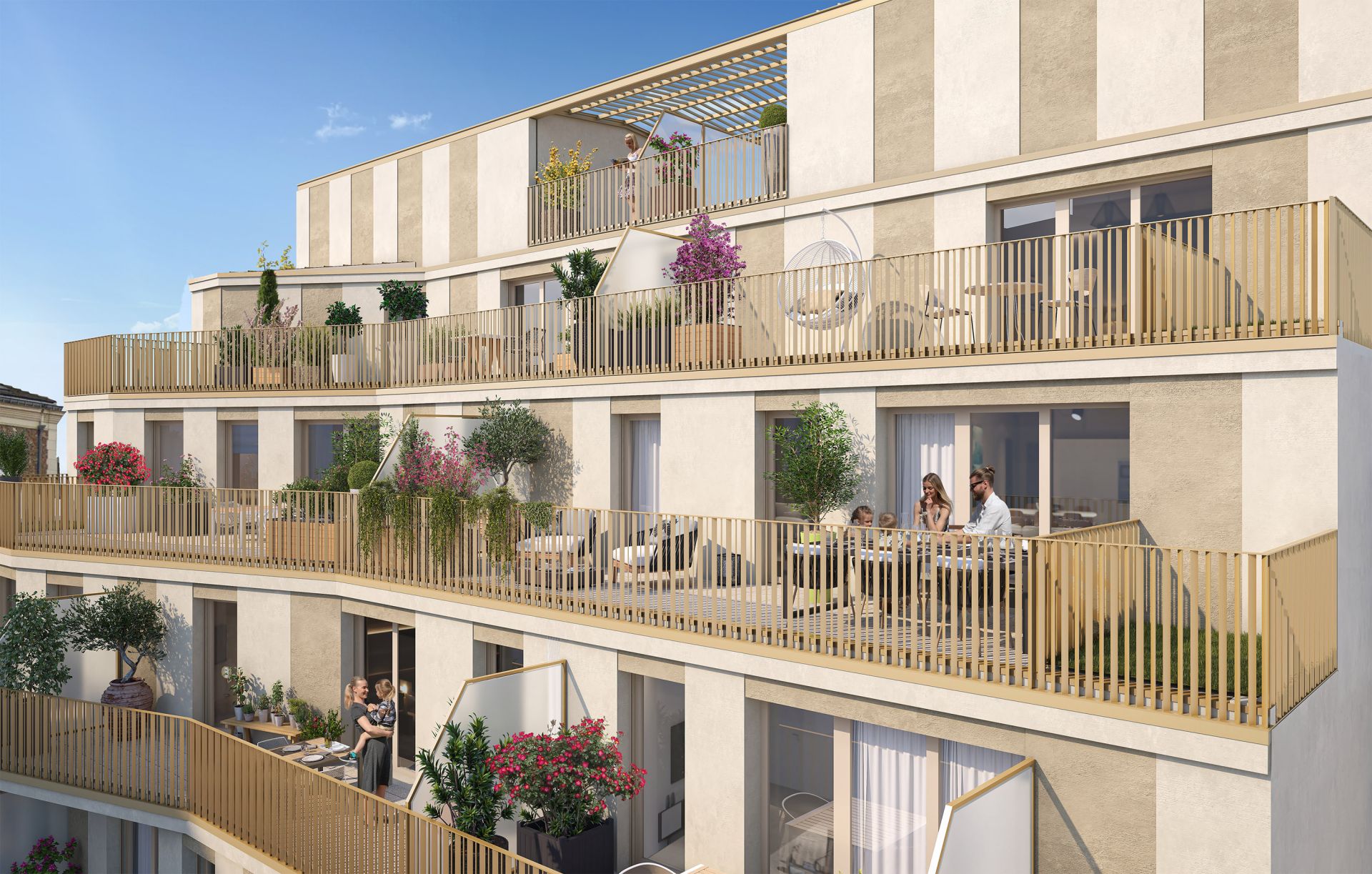 Architecture contemporaine et élégante avec terrasses, balcons et loggias.