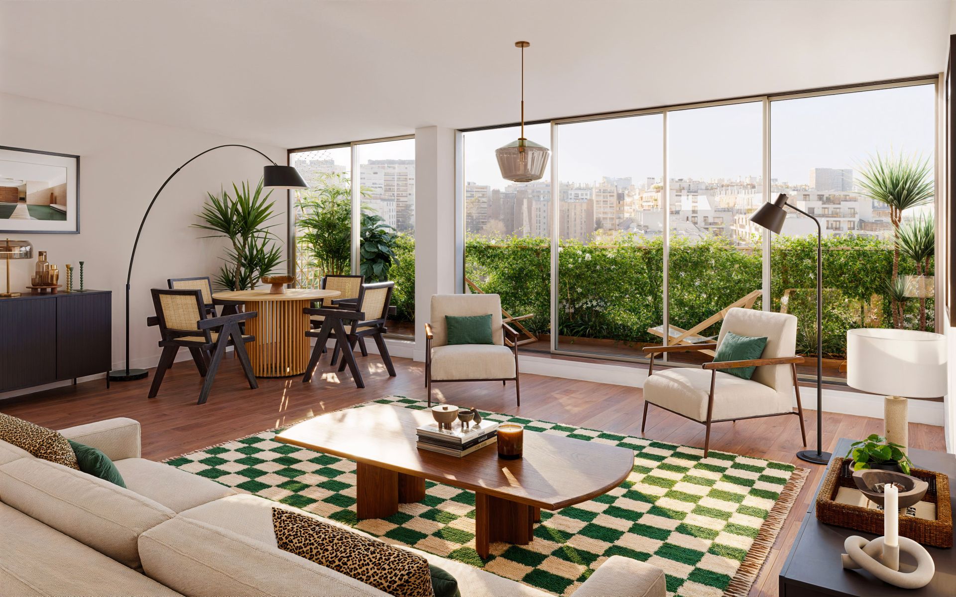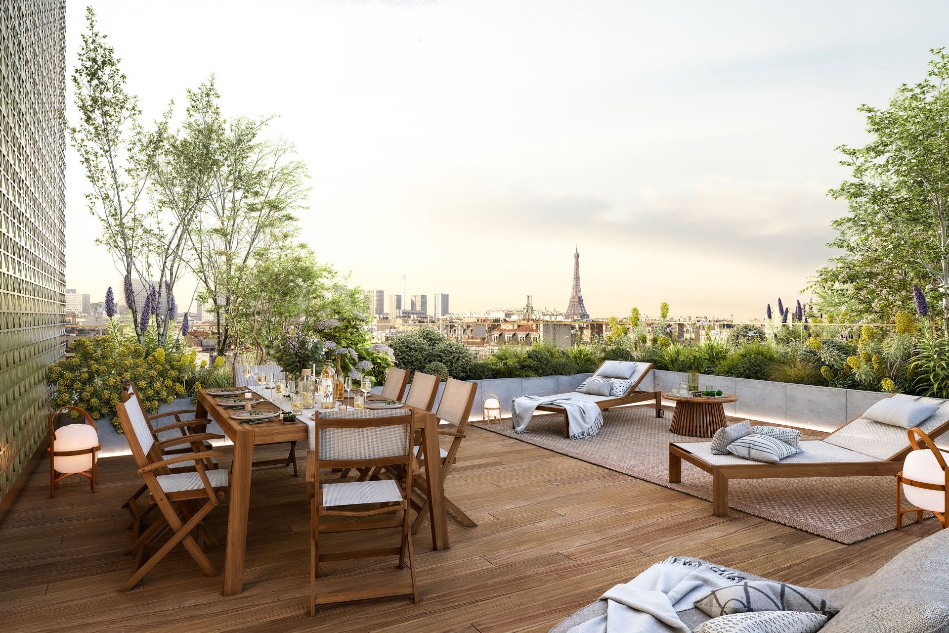 34 appartements avec balcons et terrasses De 2 à 5 pièces 2 duplex avec toit-terrasse Des volumes très contemporains, ouverts et lumineux Des extérieurs spacieux avec, en étage, vues panoramiques sur Paris et la tour Eiffel Double entrée avec interphone Cellier à l’entresol pour poussettes et vélos accessible par ascenseur 16 parkings dans l’immeuble voisin Prestations haut de gamme : (à voir si possible de compléter) Parquet massif dans les séjours Carrelage en grès cérame rectifié, 60x60 dans les pièces d’eau Sols des balcons en béton lisse ou bois Vasques encastrées Robinetterie Grohe Système domotique pilotable depuis un smartphone