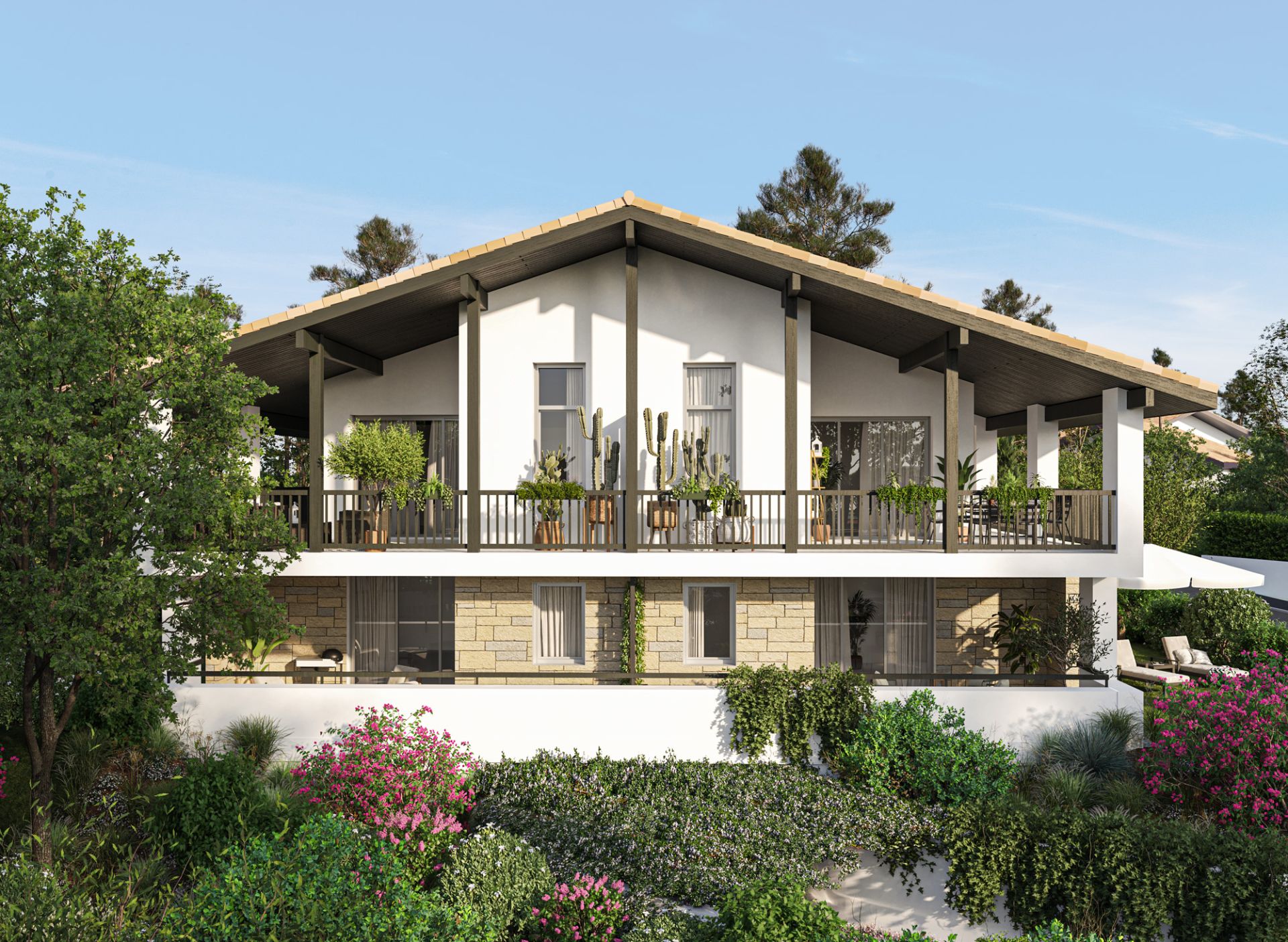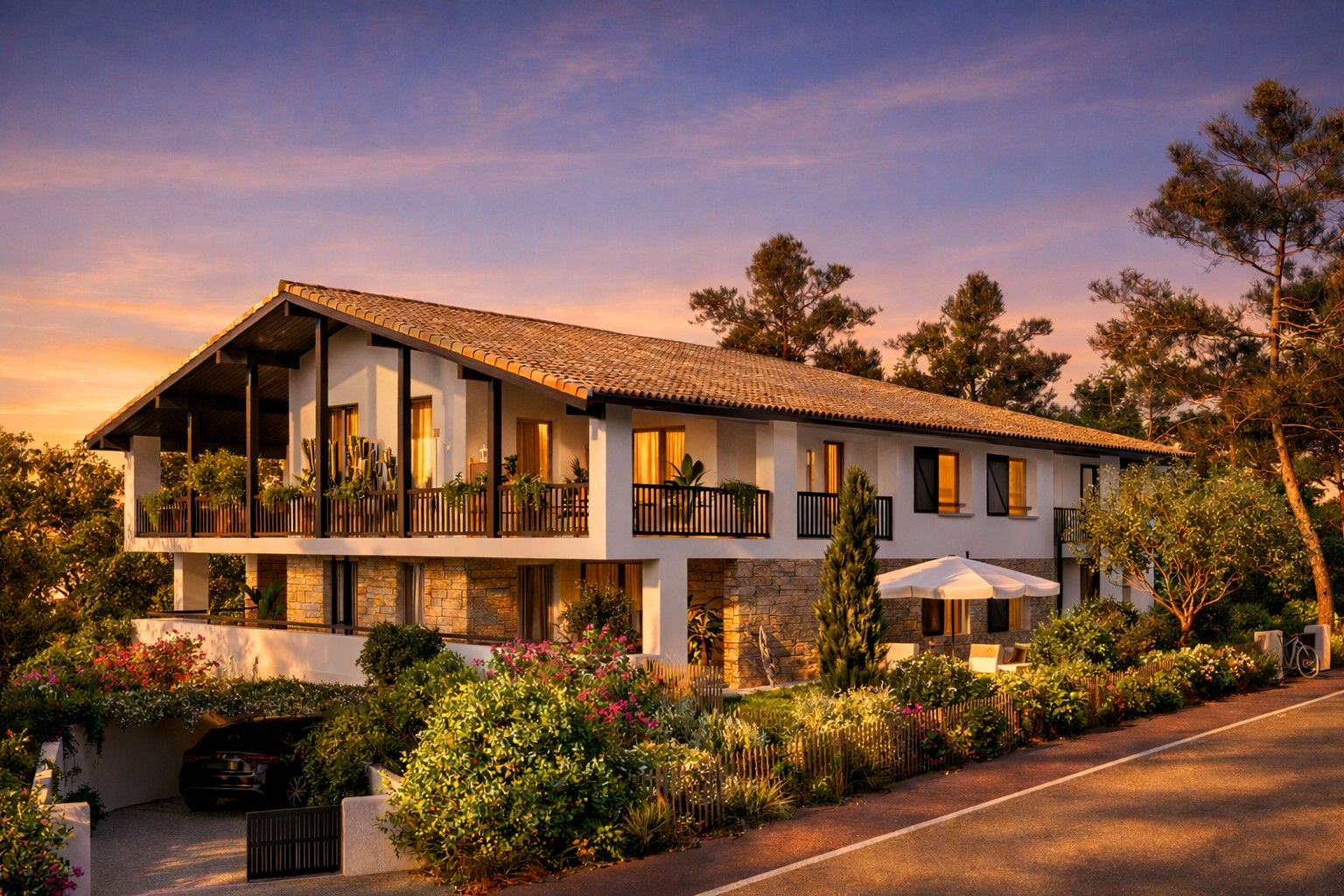Situé à Bidart, commune basque ultra prisée entre Biarritz et Saint-Jean-de-Luz, Le Domaine de l’aura est un projet immobilier exclusif bénéficiant d’un emplacement rare et privilégié. À seulement quelques minutes à pieds des plages de l’Uhabia, ce projet résidentiel de seulement 8 appartements et 2 villas individuelles, s’intègre dans un environnement préservé, entre vastes espaces naturels et vue imprenable sur l’océan. Signé par le Cabinet AM Architecture, le Domaine de l’aura est un domaine intimiste proposant seulement 10 biens d’exception : • 2 villas individuelles T5 avec piscine privative et jardin • 1 pavillon de 4 appartements T3 avec terrasse ou jardin et parkings aériens • 1 pavillon de 4 appartements T3 et T4 vue océan (pour appartement en R+1), avec terrasse ou jardin et parkings sous-sol Loin de l’agitation urbaine, le Domaine de l’aura offre un environnement paisible où seuls le bruit des vagues et les embruns rythment le quotidien. Ici, vous vivez au plus près de la nature, dans un cadre privilégié loin de l’effervescence de la ville, pour une vie tournée vers l’océan.