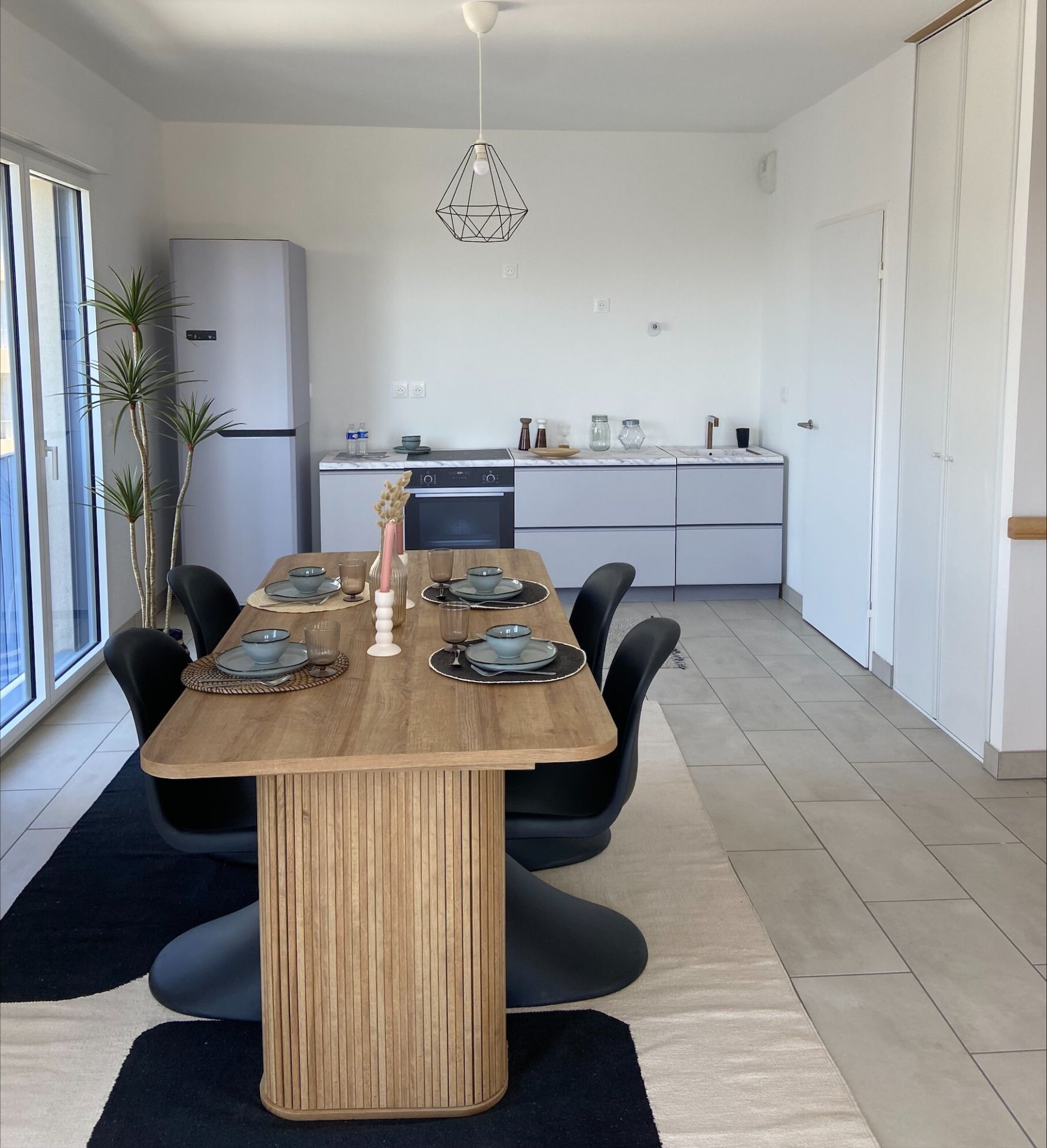 Ce spacieux T5 en duplex offre une configuration familiale et lumineuse : Grand séjour avec cuisine ouverte donnant sur une large terrasse privative. Buanderie et WC au rez-de-chaussée. À l’étage : 4 chambres, dont deux avec balcon surplombant le jardin, une salle d’eau, une salle de bain avec WC. De nombreux rangements intégrés.