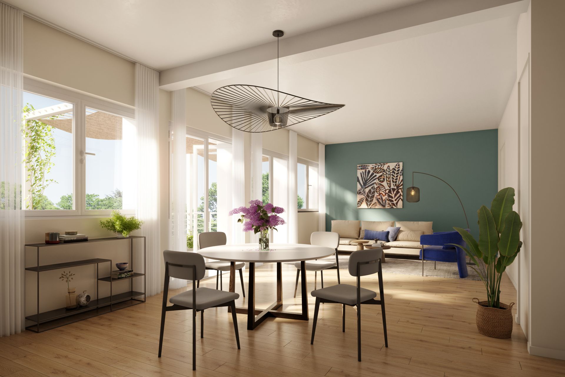 Le bâtiment B accueille 9 appartements résidentiel, principalement des T3 et T4, aux volumes généreux, conçus pour une vie paisible en cœur de ville. Chaque logement dispose de grandes ouvertures, de terrasses orientées vers le parc et d’un confort haut de gamme, idéal en résidence principale ou secondaire.