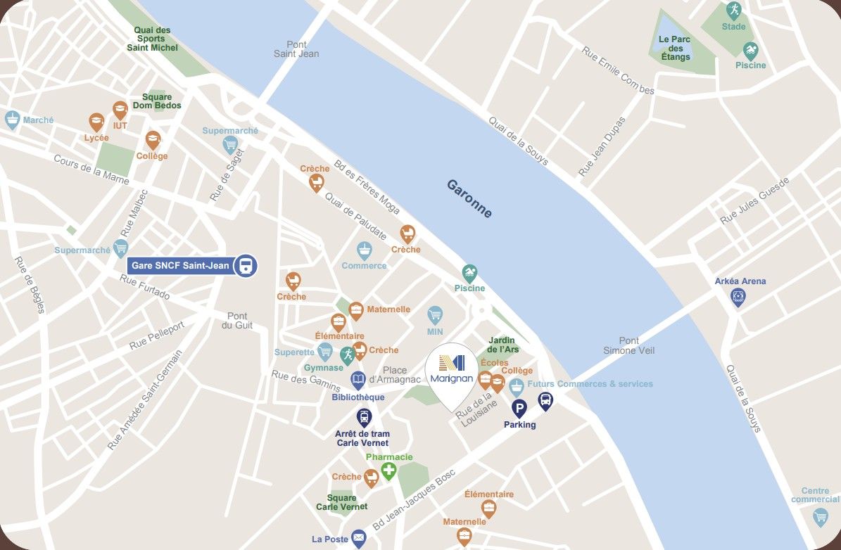 • Un emplacement de qualité, tout proche des places d’Armagnac et Ferdinand Buisson et face au nouveau parc aménagé, véritable poumon vert en bord de Garonne