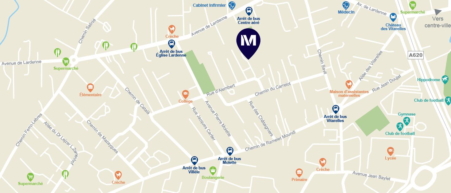 Notre emplacement est un véritable atout. À seulement 15 minutes* en voiture du CHU Purpan et 12 minutes* du site Airbus, les actifs trouveront ici un équilibre parfait entre travail et vie personnelle. Tandis que les familles, elles, profiteront d'écoles accessibles en à peine 3 minutes* et d'une offre complète de commerces à proximité : boulangerie, supermarché, restaurants, primeur accessible en 4 minutes* à vélo.