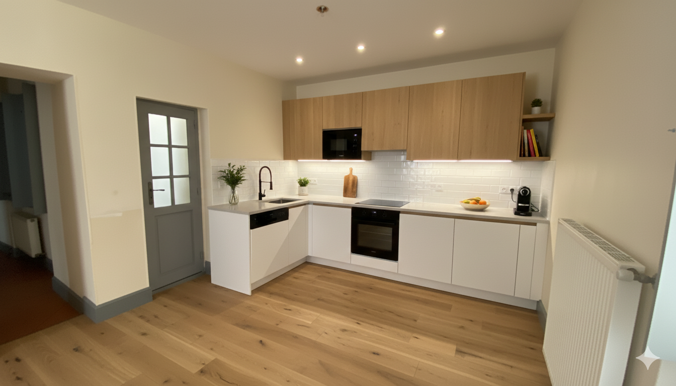 Travaux prévus : Isolation murs ITI R≥4,5 m².K/W, VMC simple flux hygroréglable, chauffe-eau thermodynamique 100L COP≥3, régulation chauffage, dépose plaquette plâtre, rénovation électrique NFC 15-100, traitement plomb, plâtrerie, cuisine équipée (hors électro), crédence, peinture, plomberie.. Livraison clé en main sous 20 semaines après acte.