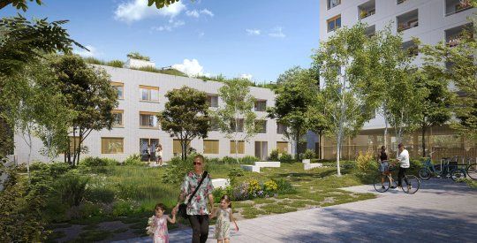Les parkings et locaux vélos sont intégrés en rez-de-chaussée ou en sous-sol, facilitant l’usage des modes de transport alternatifs.