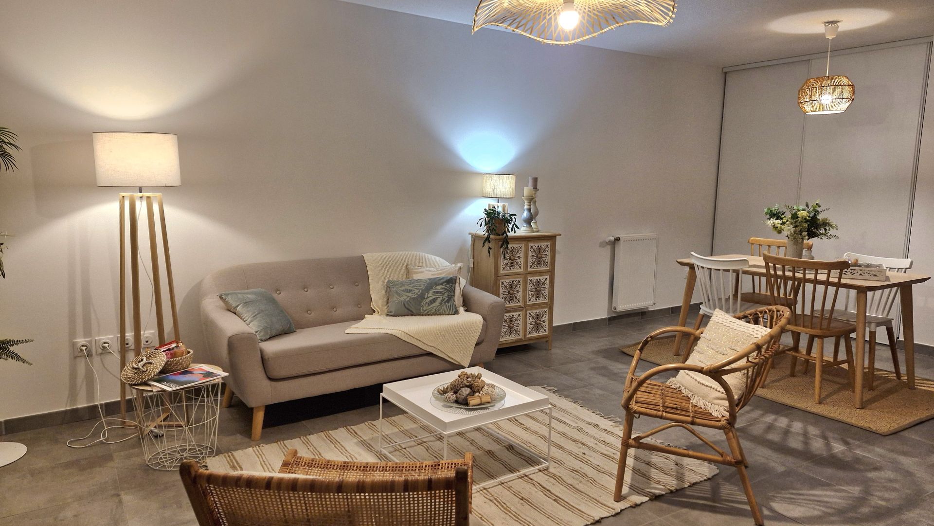 Carrelage 45x45 dans toutes les pièces (sauf chambres)
