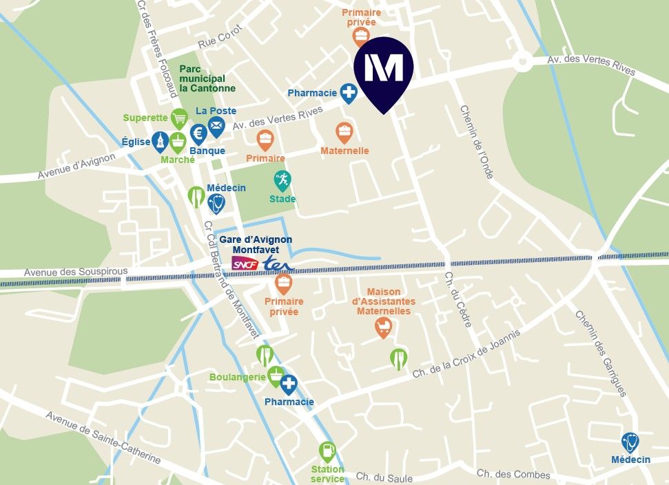 Le quartier de Montfavet, reconnu pour son ambiance résidentielle et paisible, offre une excellente accessibilité grâce au réseau de bus et à la proximité avec la gare de Montfavet, accessible en 11 min à pied*, facilitant ainsi bien les déplacements quotidiens que les liaisons régionales et nationales. La résidence est également proche du centre-ville à pied, bénéficie d’un accès rapide à l’ensemble des commerces de proximité, établissements scolaires, services et infrastructures utiles au quotidien.